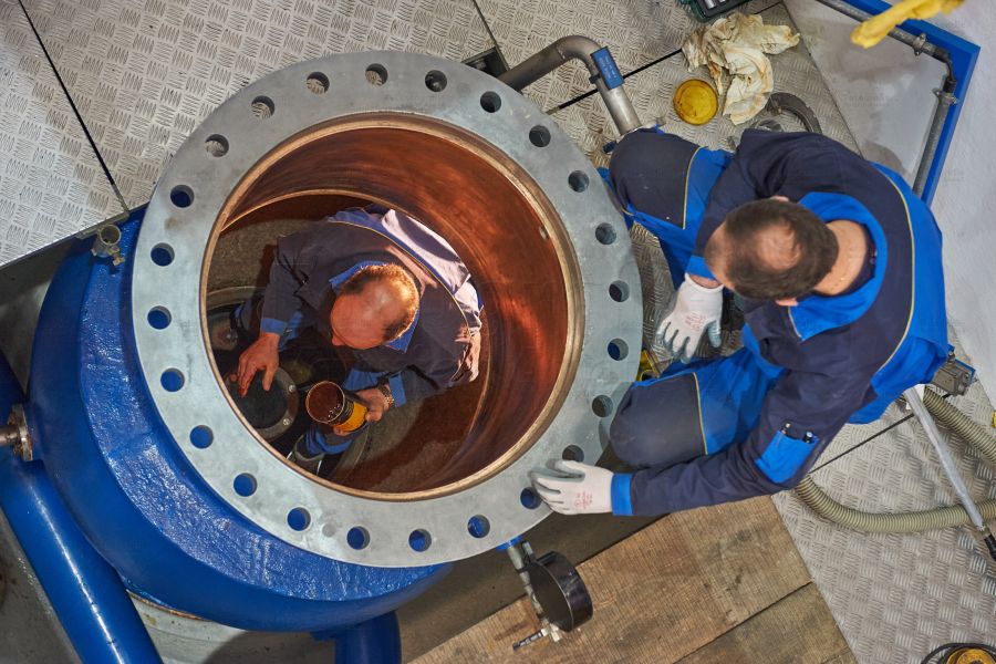 Detailaufnahmen, Ansicht von gesamten Produktionsanlagen und Maschinen.
